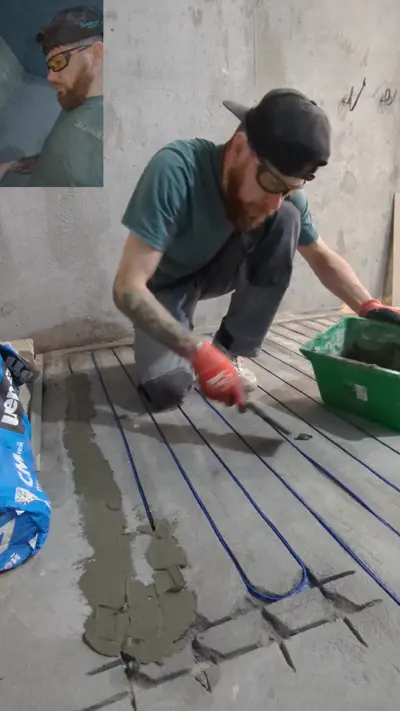 Заполняем штробы теплого пола, чтобы исключить воздушные пространства и предотвратить перегрев системы. Используем специальный инструмент — станки для теплого пола. Сопротивление четырех Ом указано на бумажной инструкции, расчеты совпадают. Все выполнено качественно.