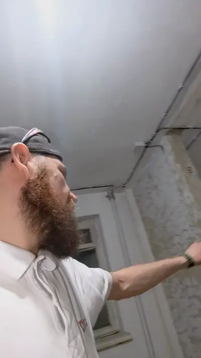 Приступили к монтажу на Университетской набережной. Сто тринадцать метров. Сегодня первый день сезона. На кухне частично используем существующий кабель. Уже установлен кабель-канал размером 40×25 мм.